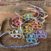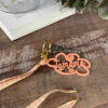 Cuelga todo, llaves, movil, cartera… con chapa Tq Mamá en metacrilato en tonos pastel con cinta estampada a tono. Tamaño chapa: 9 cm. Cinta: 70 cm.