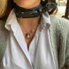 Gargantilla lava con esmalte virgen de Covadonga y piño perlitas