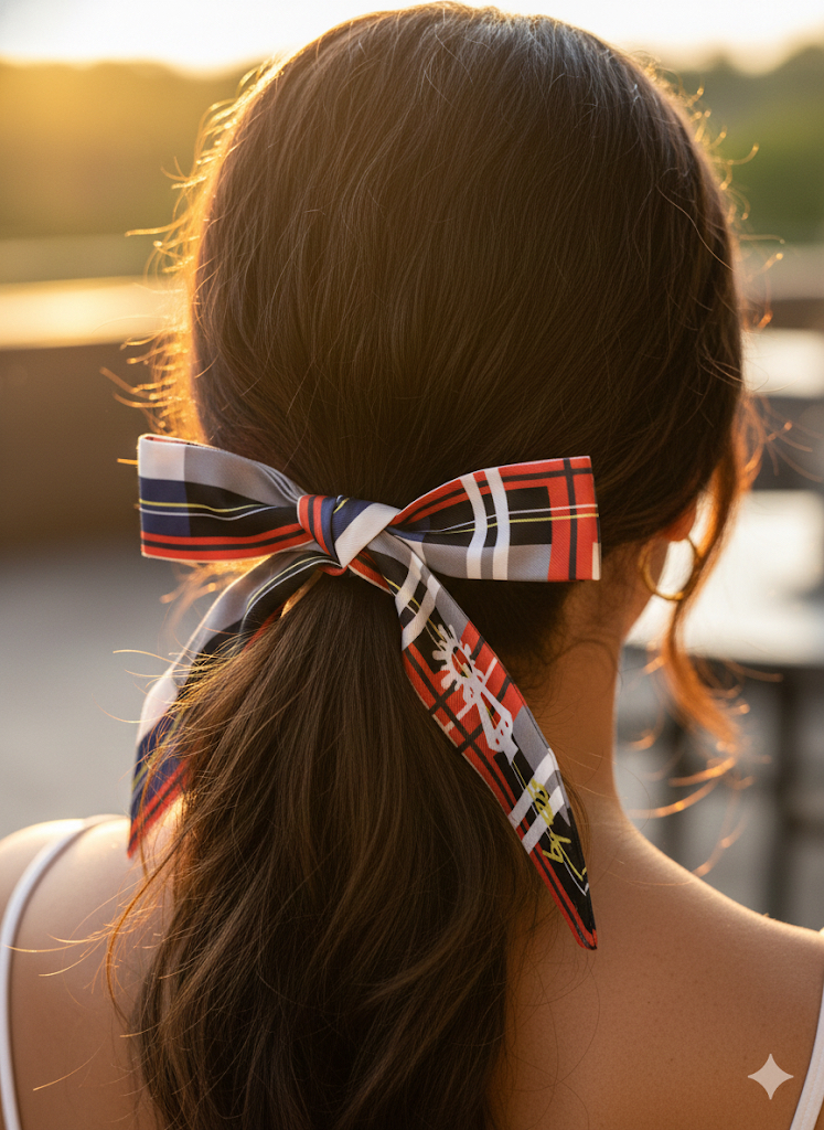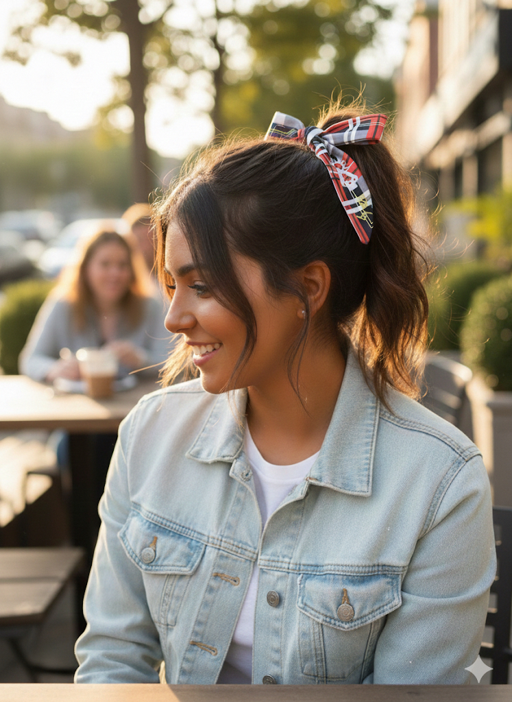 Pañuelo multiusos de cuadros escoceses , ideal para alegrar cualquier look como el bolso, cuello, muñeca , collar