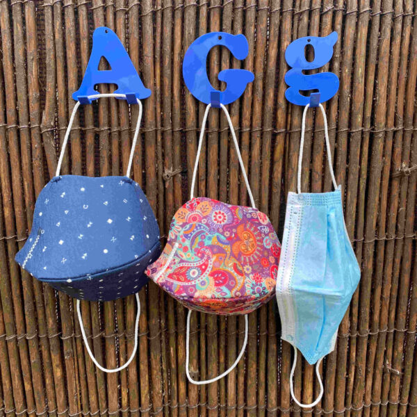 Percha con Inicial para colgar mascarillas Tamaño: 6 x 6 cm aprox.