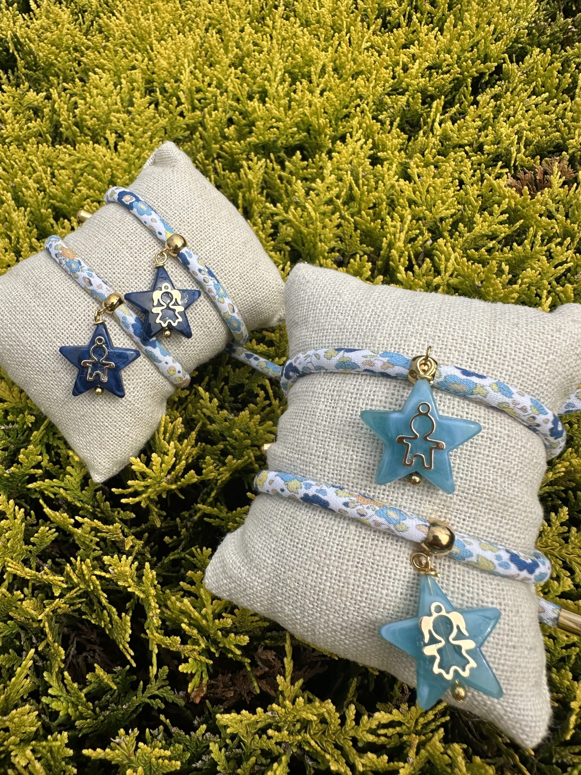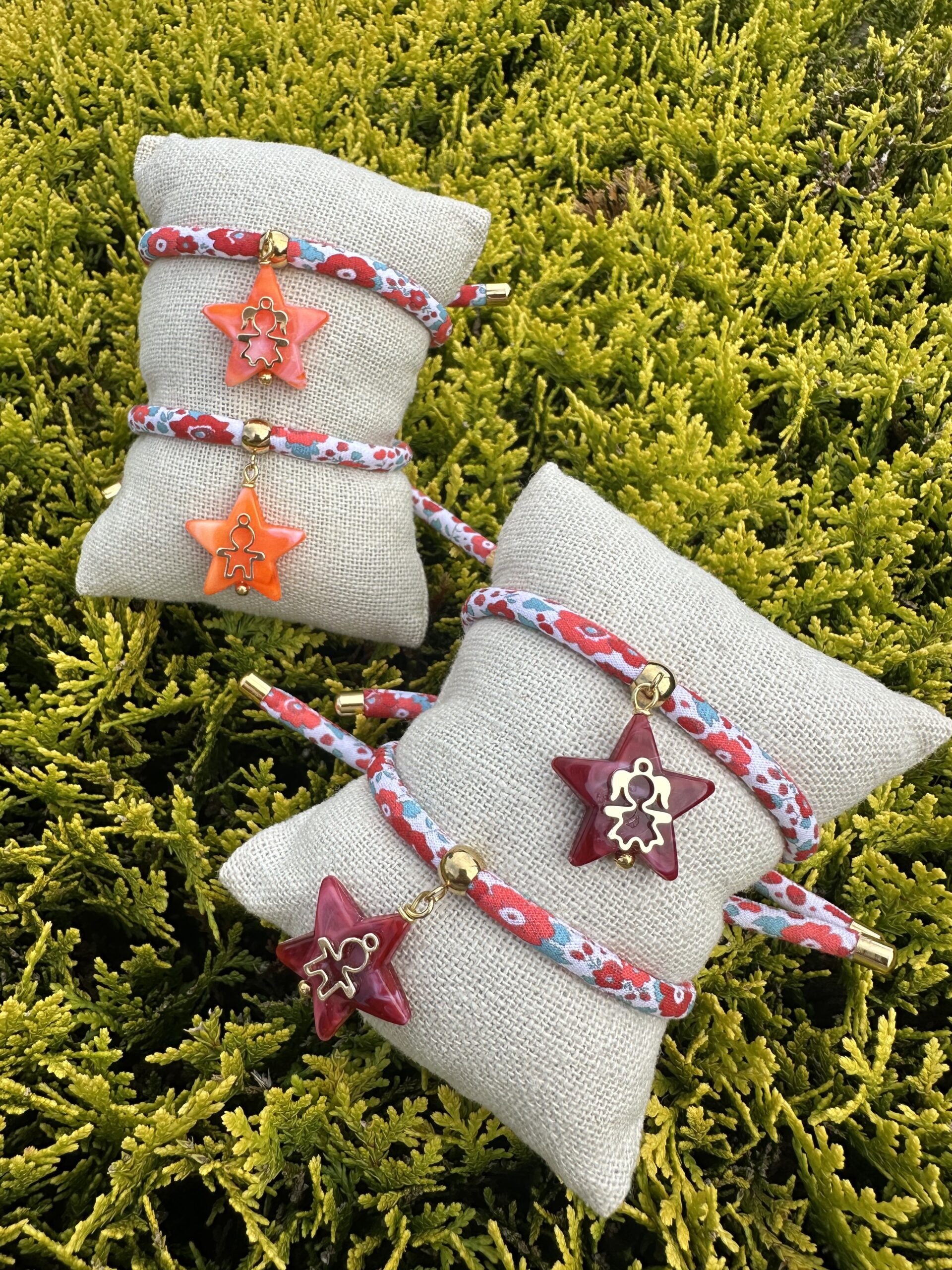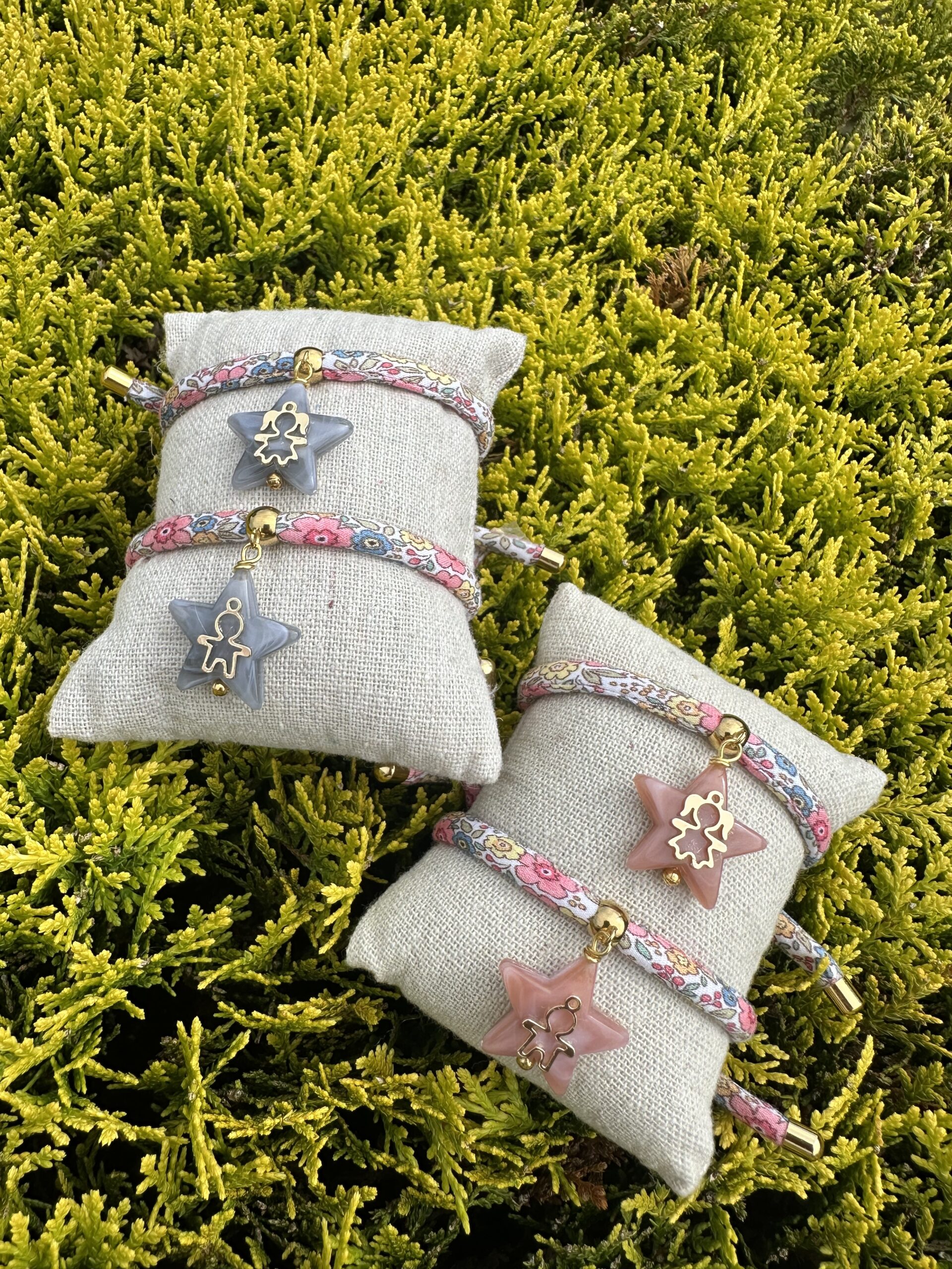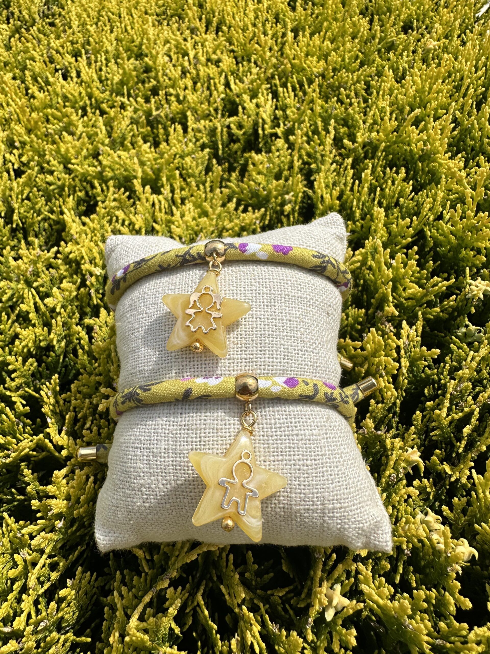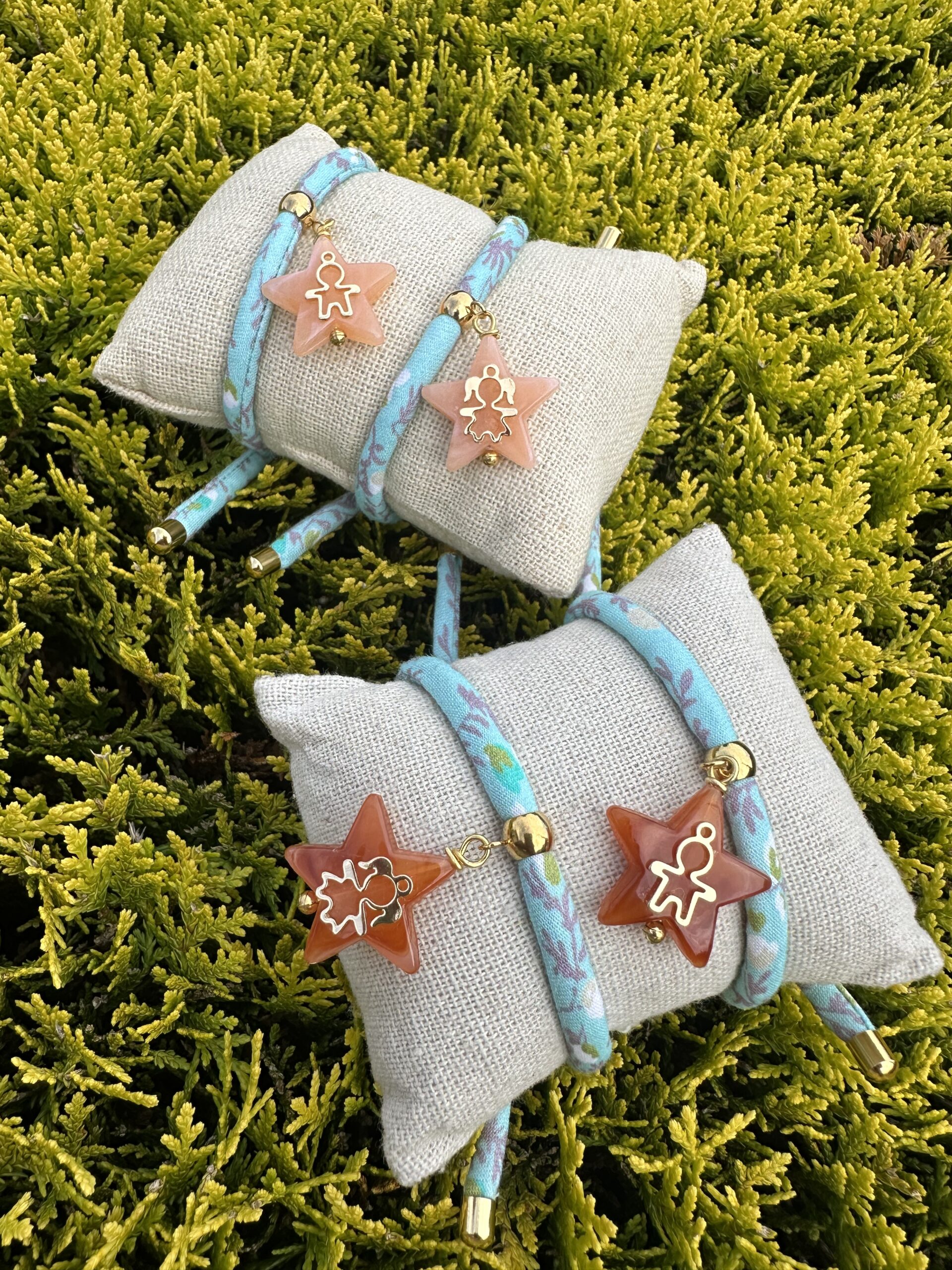Pulsera Cordón flores con colgante estrella y figura niño o niña.